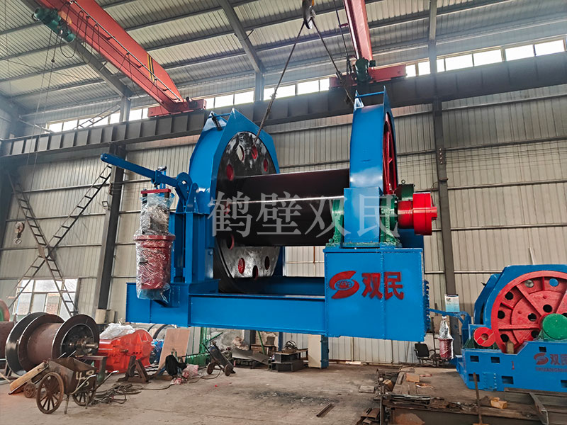 結構特點本絞車主要用于煤礦、金屬礦和非金屬礦豎井井筒掘進時懸吊吊盤、水泵、水管、注漿泵、風筒等掘進設備和張緊穩繩,該絞車系雙鋼絲繩懸吊。將減速機上的差動手把放在差動位置,若張緊穩繩,可使兩根穩繩的張緊力保持相等;若懸吊水管、注漿管、風筒等管類設備,可保證其被懸吊管類設備與地面保持垂直的狀態。如果懸吊吊盤等盤狀設備,需將其差動手把放在直通位置,才能實現兩繩繩速的一致。