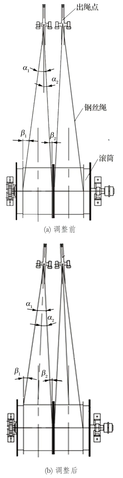 圖4 調(diào)整前后鋼絲繩內(nèi)外偏角對比示意