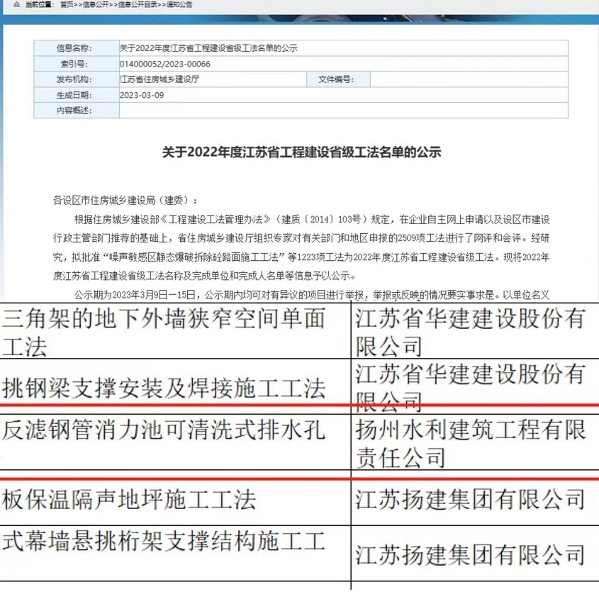 公司一項工法獲評2022年度江蘇省工程建設省級工法