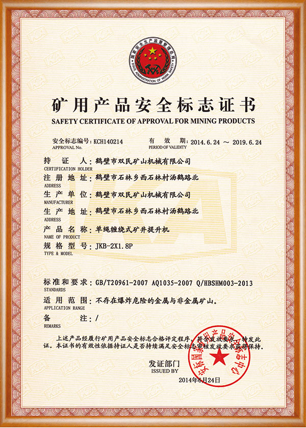 礦用產品安全標志證書